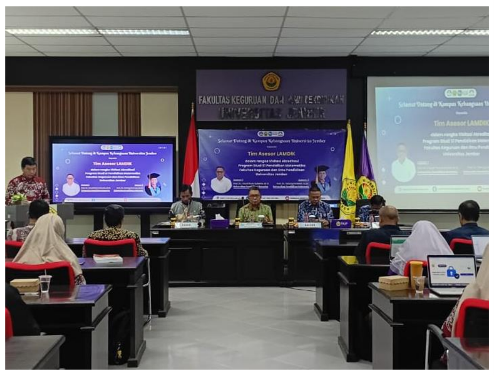 Jember, [14 Des 2024] – Program Studi S1 Pendidikan Matematika Universitas Jember baru saja melaksanakan kegiatan Asesmen Lapangan dalam rangka akreditasi program studi. Kegiatan ini berlangsung selama 2 hari (13-14 Desember 2024) dan melibatkan dua asesor dari Lembaga Akreditasi Mandiri Pendidikan (LAMDIK), yaitu Prof. Dr. I Gusti Putu Suharta, M.Si dan Prof. Dr. Tatang Herman, M.Ed