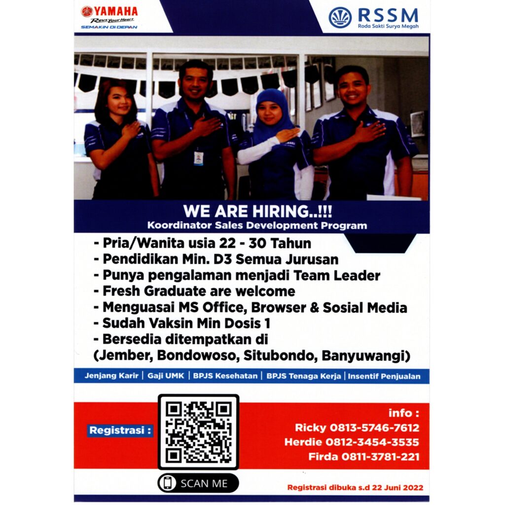 HI JOBSEEKER, SALAM SEMAKIN DI DEPAN! PT. Roda Surya Sakti Megah lagi open rekrutmen nih untuk beberapa posisi. Yuk buruan kirim lamaran kalian ke link yg sudah kita sediakan atau scan kode QR yg tersedia di poster. #yamaharecruitment #yamaha #yamahajatim #yamahajember #yamahamotors #lowongankerja #lokerjember #lowongankerjayamaha #yamaha #yamahajember #lokerjbr #lowonganjbr #SCDPJBR