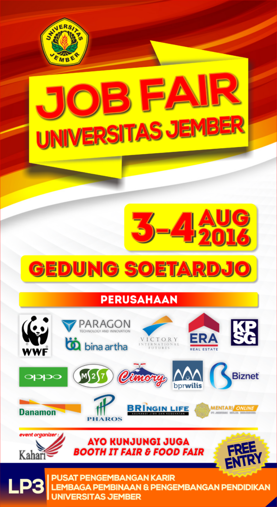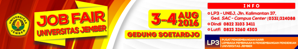 Job Fair Universitas Jember yang diadakan tanggal 3 – 4 Agustus 2016 dihadiri oleh lebih dari 2000 para pencari kerja atau jobseeker. Terbukti dari penjualan kartu indosat yang disediakan oleh perusahaan Indosat Oredoo yang memfasilitasi para jobseeker untuk menerima informasi dari hasil lamaran yang telah mereka masukkan ke perusahaan-perusahaan peserta Job Fair Unej 2016. Adapun […]