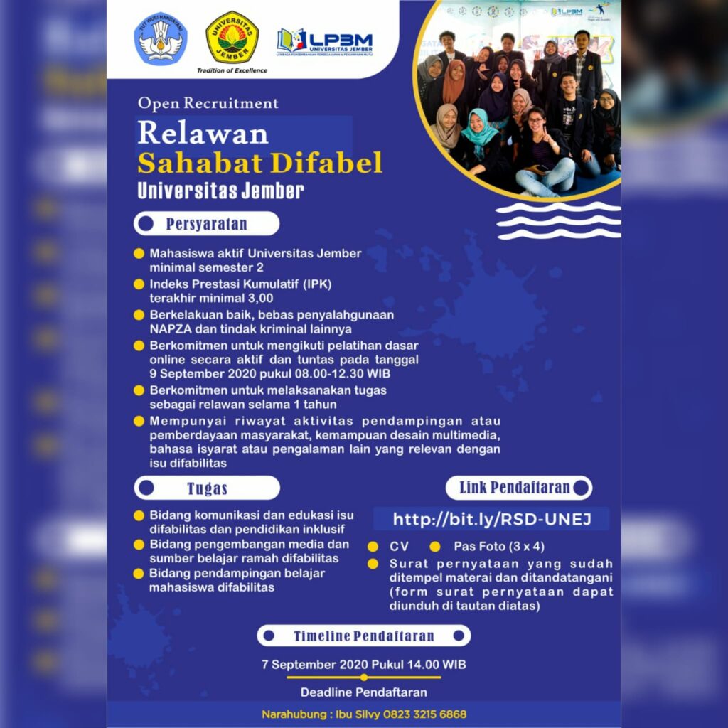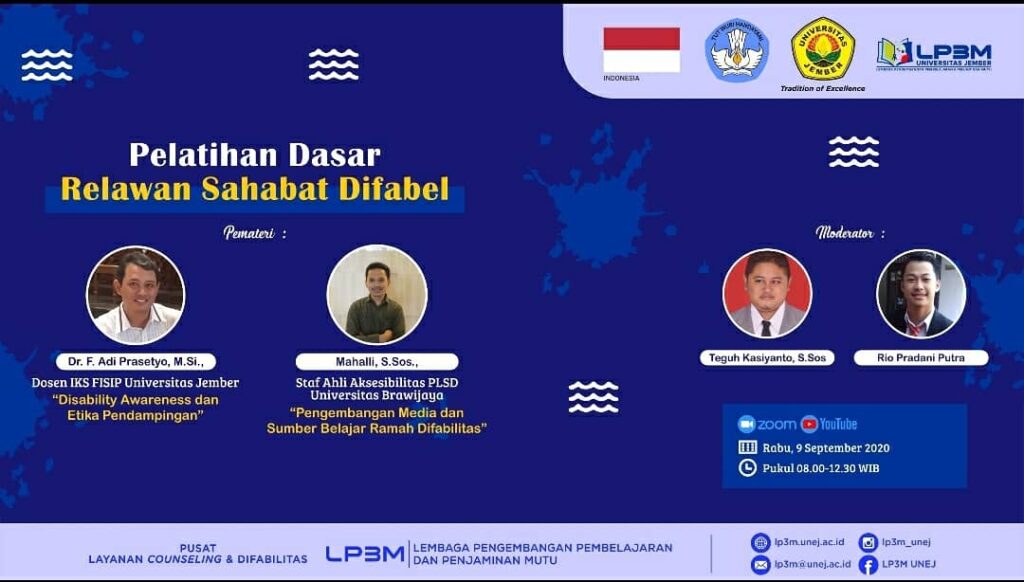 Webinar Kesehatan Mental Remaja series ke-3 “Mengenal Gangguan Depresi Mayor” Kegiatan ini adalah kegiatan ke 3 pada Webinar Series yang pada series sebelumnya membahas tentang Skizofrenia dan Bipolar. Pusat Layanan Counseling dan Difabilitas LP3M Universitas Jember menjadi koordinator untuk kegiatan Webinar, terdapat 2 orang penerjemah bahasa isyarat pada webinar ini dengan tujuan untuk memudahkan teman […]