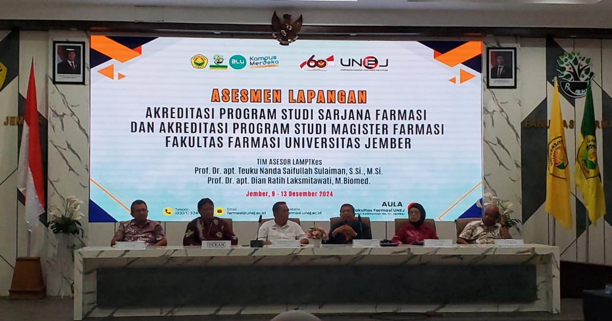 Jember, 13 Desember 2024 – Fakultas Farmasi Universitas Jember (UNEJ) telah menyelesaikan rangkaian kegiatan asesmen lapangan akreditasi untuk program study Sarjana Farmasi dan Magister Farmasi yang diselenggarakan oleh Lembaga Akreditasi Mandiri Pendidikan Tinggi Kesehatan (LAM-PTKes). Kegiatan yang berlangsung selama lima hari, mulai tanggal 9 hingga 13 Desember 2024 ini, merupakan langkah penting dalam upaya peningkatan kualitas pendidikan di bidang farmasi.