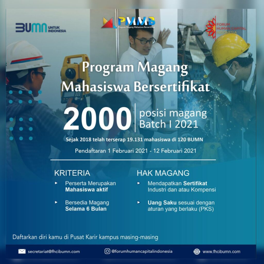 Program Penerimaan Magang PMMB (Program Magang Mahasiswa Bersertifikat) BATCH 1 th 2021.