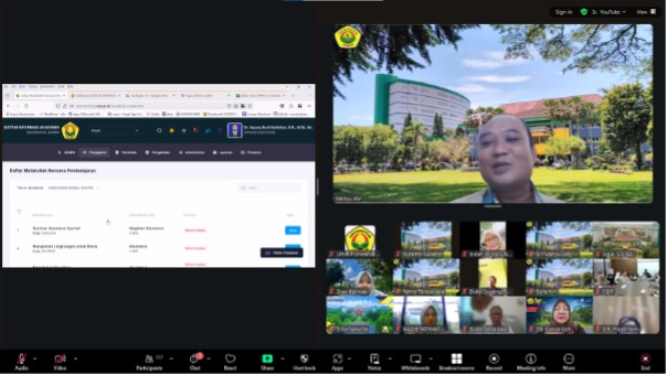 Pada sesi kedua, Dr. Wahyu Agus Winarno, S.E., M.Sc., Ak. selaku Ketua Divisi Pengembangan Aplikasi Fronted, UPA Teknologi Informasi dan Komunikasi Universitas Jember memberikan pelatihan teknis pengisian CPL dan indikator kinerja ke dalam SIAKAD. Melalui simulasi langsung, peserta dilatih mulai dari proses login, pemilihan menu, hingga input data yang benar. Berbagai kendala teknis yang muncul dapat teratasi melalui pendampingan dan diskusi interaktif.