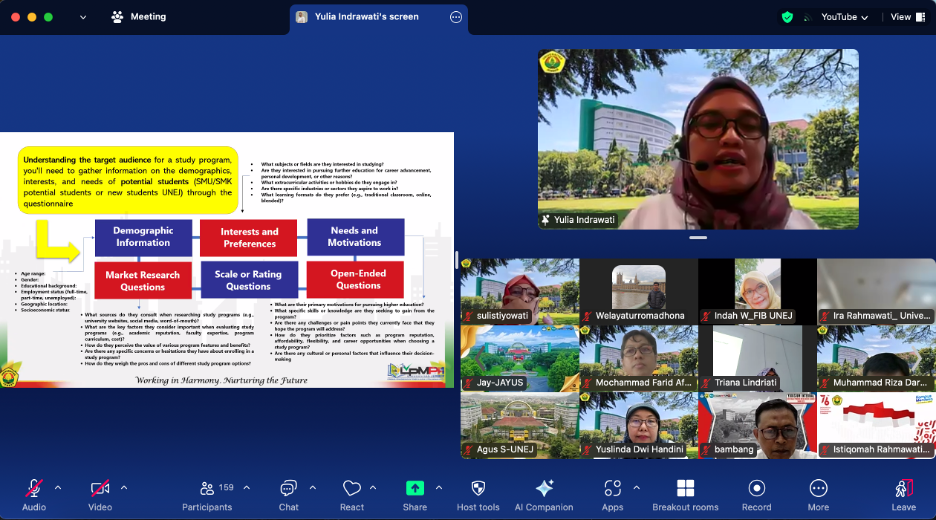 Jember, 15 September 2025 – Universitas Jember terus menegaskan komitmennya dalam meningkatkan mutu pendidikan tinggi. Melalui Lembaga Penjaminan Mutu dan Pengembangan Pembelajaran (LPMPP), UNEJ yang motori oleh Pusat Audit dan Pengendalian Mudu (PAPM) menyelenggarakan Sosialisasi Penyusunan Dokumen Posisi Daya Saing Program Studi yang berlangsung secara daring. Kegiatan ini diikuti oleh jajaran pimpinan akademik, mulai dari Wakil Dekan Bidang Akademik, Wakil Direktur Bidang Akademik Pascasarjana, Koordinator Program Studi, hingga Gugus Penjaminan Mutu (GPM) dan Unit Penjaminan Mutu (UPM) dari seluruh fakultas. Antusiasme peserta mencerminkan keseriusan Universitas Jember dalam memperkuat sistem penjaminan mutu serta memastikan program studi mampu berkembang di tengah persaingan pendidikan tinggi yang semakin ketat.
