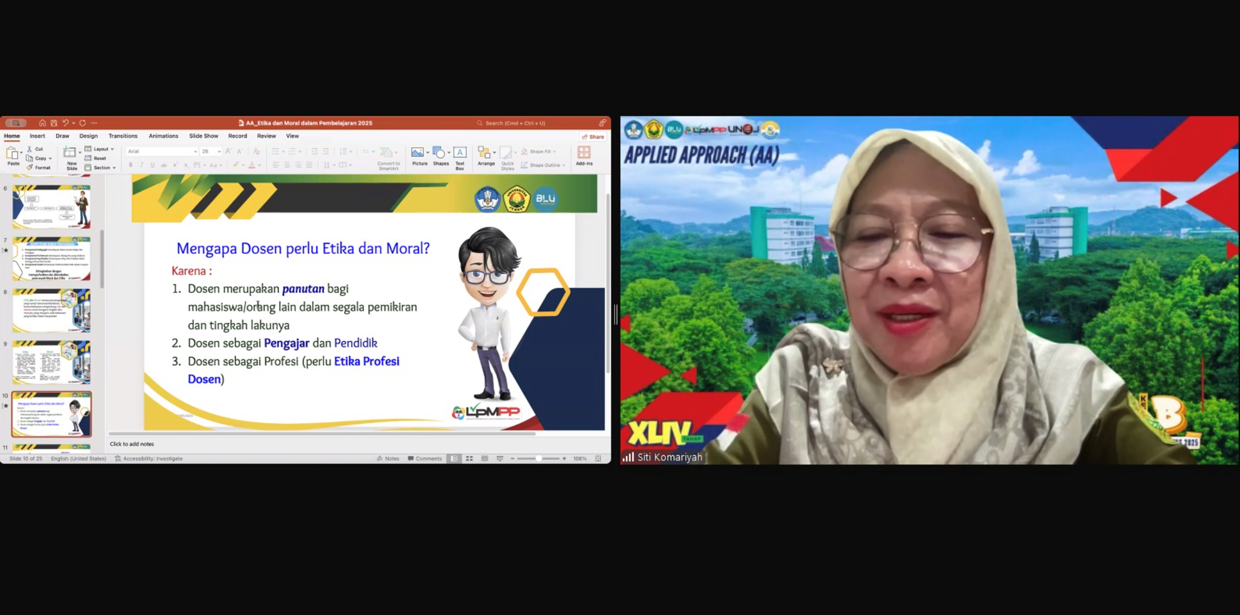 Jember, Agustus 2025 — Lembaga Pengembangan, Pembelajaran, dan Penjaminan Mutu Pendidikan (LPMPP) Universitas Jember sukses menyelenggarakan Pelatihan Applied Approach (AA) Tahap 44 Tahun 2025. Kegiatan ini berlangsung dalam format blended learning, yakni tiga hari secara daring melalui Zoom dan satu hari secara luring di Aula Lantai 2 LPMPP.