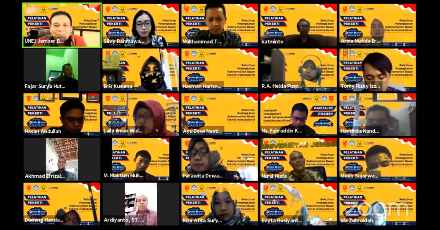Ada yang berbeda pada Pelatihan Pekerti th 2020 ini, di karenakan pada pelatihan kali ini di laksanakan secara virtual. Pelatihan ini di ikuti oleh 52 Peserta dengan rincian Dosen Universitas Jember sebanyak 46 Dosen, dan Dosen External sebanyak 6 Dosen.
