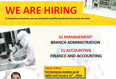PELUANG KERJA LULUSAN F.EKONOMI DAN F.TEKNIK “DI PI.MEDION” Leave a Comment / Berita, Info Lowongan Kerja, Pusat-Pusat / By lpmpp-unej Paling Lambat 31 Januari 2018