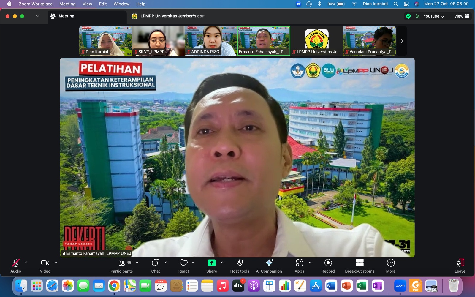 JEMBER – Lembaga Penjaminan Mutu dan Pengembangan Pembelajaran (LPMPP) Universitas Jember (UNEJ) sukses menyelenggarakan Pelatihan Peningkatan Keterampilan Dasar Teknik Instruksional (PEKERTI) Angkatan LXXXIII Tahun 2025 dengan format Hibrida, yang berlangsung secara lancar dan kondusif mulai 27 hingga 31 Oktober 2025.