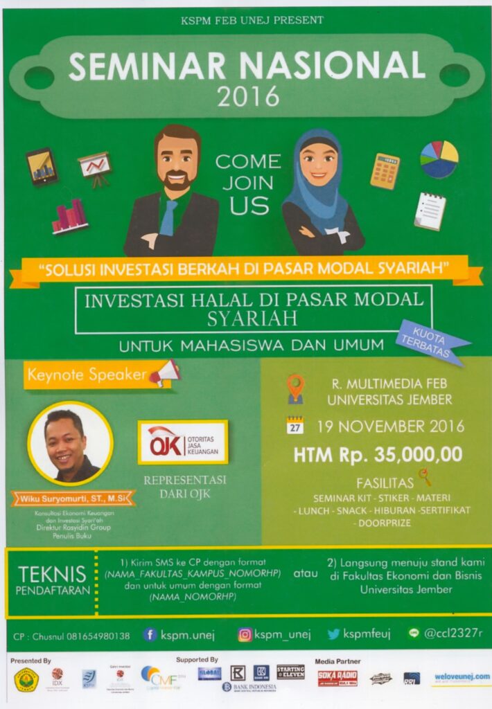 Seminar Nasional “Solusi Investasi Berkah Di Pasar Modal Syariah” Leave a Comment / Berita / By lpmpp-unej
